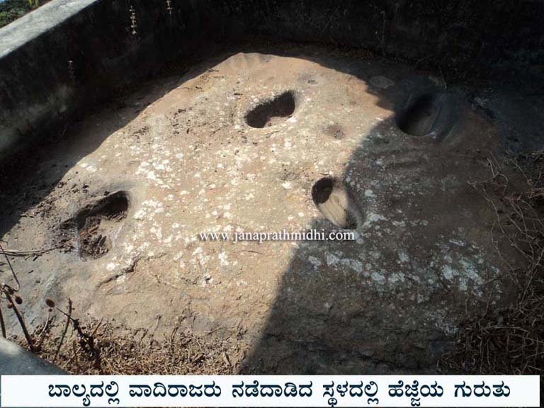 ವಾದಿರಾಜರು ನಡೆದಾಡಿದ ಸ್ಥಳದಲ್ಲಿ ಹೆಜ್ಜೆಯ ಗುರುತು : ಇಲ್ಲಿಯೇ ಹೂವಿನಕೆರೆಯಿಂದ ಹರಿದುಹೋಗುವ ನದಿಯ ಪಕ್ಕದಲ್ಲಿ ಬಂಡೆಯ ಮೇಲೆ ವಾದಿರಾಜರು ಬಾಲ್ಯದಲ್ಲಿ ನಡೆದಾಡಿದ ಸ್ಥಳದಲ್ಲಿ ಮೂರ್‍ನಾಲ್ಕು ಹೆಜ್ಜೆಯ ಗುರುತು ಕಾಣಿಸಿಕೊಂಡಿದೆ. ಹಿಂದೆ ಭೀಮನ ಹೆಜ್ಜೆಯ ಗುರುತು ಎಂದು ಹೇಳಲಾಗಿತ್ತು. ಕ್ರಮೇಣ ಪಾಜಕ ಕ್ಷೇತ್ರದಲ್ಲಿ ಮದ್ವಾಚಾರ್ಯರ ಪಾದಕ್ಕೆ ಈ ಹೆಜ್ಜೆಗಳು ಹೋಲಿಕೆಯಾಗಿದ್ದರಿಂದ ವಾದಿರಾಜರ ಹೆಜ್ಜೆ ಎಂದು ಭಕ್ತರು ನಂಬಿದ್ದರು. ಈ ಹೆಜ್ಜೆಯ ಗುರುತುಗಳನ್ನು ರಕ್ಷಣೆಗಾಗಿ 1980 ರಲ್ಲಿ ಮಂಟಪ ಕಟ್ಟಲಾಗಿದೆ. ವಾದಿರಾಜರು ಭಾವಿ ಸಮೀರರಾದ ಕಾರಣ ವಾಯು ಶಕ್ತಿಯಿಂದ ಕ್ಷಣಮಾತ್ರದಲ್ಲಿ ಹೆಜ್ಜೆಯ ಗುರುತು ಕಾಣಿಸಿಕೊಂಡಿದೆ ಎಂಬುವುದು ಭಕ್ತರ ನಂಬಿಕೆಗೆ ಅರ್ಹವಾಗಿದೆ.