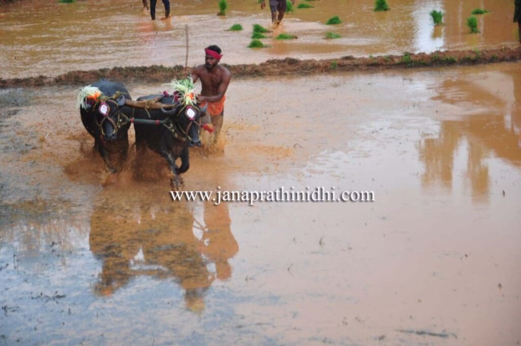 ರೆಸಾರ್ಟ್‌ನ ಆವರಣದಲ್ಲಿನ ಗದ್ದೆಯನ್ನು ನಾಟಿಗೆ ಹದಗೊಳಿಸಿ ನೇಜಿಯನ್ನು ಸಿದ್ಧಗೊಳಿಸಲಾಗಿತ್ತು. ನಾಟಿ ಪೂರ್ವದಲ್ಲಿ ಕೆಸರು ಗದ್ದೆಯಲ್ಲಿ ಕಂಬಳೋತ್ಸವ ನಡೆಯಿತು. ಕಾರ್ಯಕ್ರಮವನ್ನು ಜಾಗತಿಕ ಬಂಟರ ಸಂಘದ ಒಕ್ಕೂಟ ಕೋಶಾಧಿಕಾರಿ ಉಳ್ತೂರು ಮೋಹನದಾಸ ಶೆಟ್ಟಿ ಉದ್ಘಾಟಿಸಿದರು. ಕೆಸರು ಗದ್ದೆಯಲ್ಲಿ ಆಲೂರು ಶೇಖರ ಶೆಟ್ಟಿಯವರ ಕಂಬಳ ಕೋಣಗಳ ಓಟ, ಕೆನೆ ಹಲಗೆ ಓಟ ನಡೆಯಿತು. ಬಳಿಕ ಕೆಸರು ಗದ್ದೆಯಲ್ಲಿ ಹಗ್ಗ ಜಗ್ಗಾಟ ನಡೆಯಿತು.