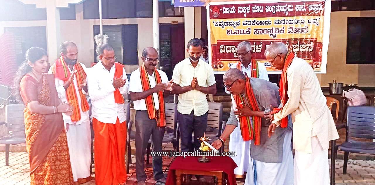 ಕುಂದಾಪುರ: ದಶಮಾನೋತ್ಸವದ ಹೊಸ್ತಿಲಿನಲ್ಲಿರುವ ವಂಡ್ಸೆ ಗ್ರಾಮದ ಆತ್ರಾಡಿಯ ವಿಜಯ ಮಕ್ಕಳಕೂಟ ಆಂಗ್ಲಮಾಧ್ಯಮ ಶಾಲೆ ಸ್ಥಳೀಯ ಸಂಸ್ಕೃತಿ-ಸಂಸ್ಕಾರವನ್ನು ವಿದ್ಯಾರ್ಥಿಗಳಿಗೆ ಪರಿಚಯಿಸುವ ಉದ್ದೇಶದಿಂದ ಕುಣಿತ ಭಜನೆಯ ಬಗ್ಗೆ ವಿದ್ಯಾರ್ಥಿಗಳಿಗೆ ತರಬೇತಿ ನೀಡಿ, ವಿದ್ಯಾರ್ಥಿಗಳಿಂದಲೇ ಶಾಲೆಯಲ್ಲಿ ಕುಣಿತ ಭಜನಾ ಕಾರ್ಯಕ್ರಮವನ್ನು ಇತ್ತೀಚೆಗೆ ಆಯೋಜಿಸಿತ್ತು.