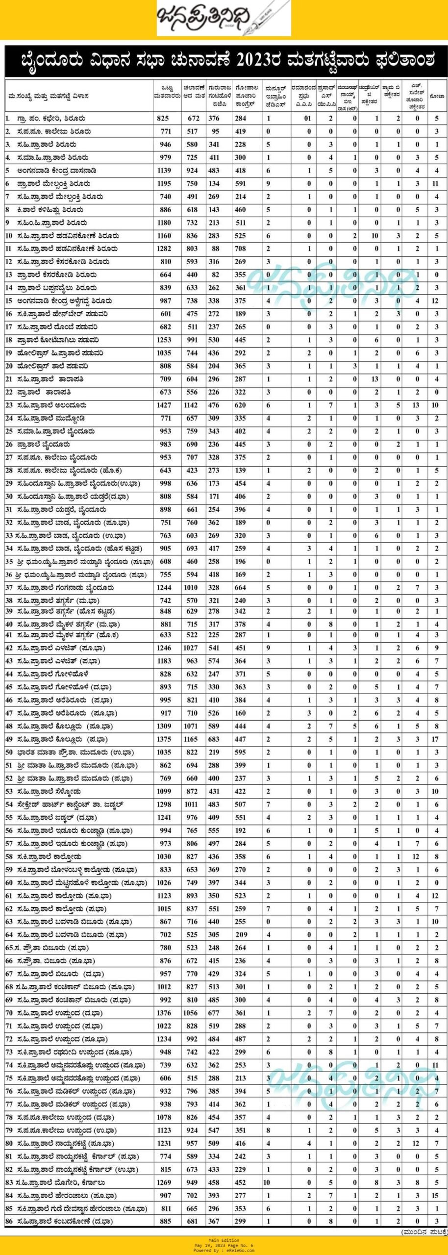 ಬೈಂದೂರು ವಿಧಾನಸಭಾ ಚುನಾವಣೆ-2023: ಮತಗಟ್ಟೆವಾರು ಫಲಿತಾಂಶ (byndoor constituency booth wise 2023)
