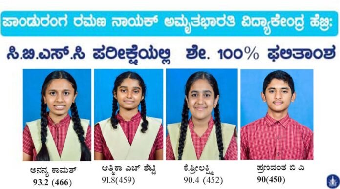 ಪಾಂಡುರಂಗ ರಮಣ ನಾಯಕ್ ಅಮೃತಭಾರತಿ ವಿದ್ಯಾಕೇಂದ್ರ ಹೆಬ್ರಿ: ಸಿ.ಬಿ.ಎಸ್.ಸಿ ಪರೀಕ್ಷೆಯಲ್ಲಿ ಶೇ. 100% ಫಲಿತಾಂಶ