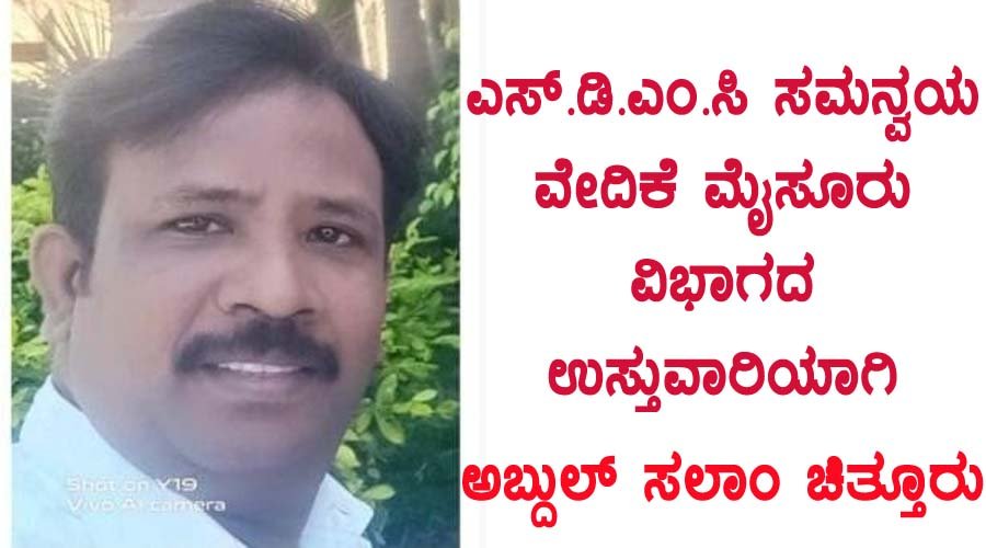 ಎಸ್.ಡಿ.ಎಂ.ಸಿ ಸಮನ್ವಯ ವೇದಿಕೆ ಮೈಸೂರು ವಿಭಾಗದ ಉಸ್ತುವಾರಿಯಾಗಿ ಅಬ್ದುಲ್ ಸಲಾಂ ಚಿತ್ತೂರು