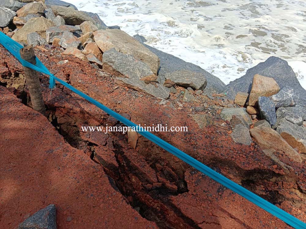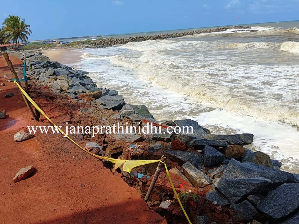 ಕಳೆದ ಒಂದು ವಾರದಿಂದ ಕಡಲ ಕೊರತೆ ಕಾಣಿಸಿಕೊಂಡಿದ್ದು ನಿನ್ನೆಯಿಂದ ಅದು ಭೀಕರ ರೂಪ ತಾಳಿದೆ. ಕಳೆದ ವರ್ಷ ಕಡಲ್ಕೊರೆತದಿಂದ ಸಾಕಷ್ಟು ಹಾನಿಯಾದ ಹೊರ ಬಂದರು ಸಮೀಪದಲ್ಲಿಯೇ ಮತ್ತೆ ಅಪಾಯ ಎದುರಾಗಿದೆ. ರಕ್ಕಸ ಗಾತ್ರದ ಅಲೆಗಳು ದಡಕ್ಕೆ ಅಪ್ಪಳಿಸುತ್ತಿದ್ದು ವಿದ್ಯುತ್ ಕಂಬ, ತೆಂಗಿನ ಮರಗಳು ಸೇರಿದಂತೆ ಸಮುದ್ರ ತೀರ ಪ್ರದೇಶದಲ್ಲಿ ತಡೆಗೆ ಅಡ್ಡ ಹಾಕಿದ ಕಲ್ಲುಗಳು ಕೊಚ್ಚಿಕೊಂಡು ಹೋಗುತ್ತಿದೆ. ಕರಾವಳಿ ರಸ್ತೆ ಬಿರುಕು ಕಾಣಿಸಿಕೊಂಡಿದ್ದು ಆತಂಕ ಹುಟ್ಟಿಸಿದೆ.