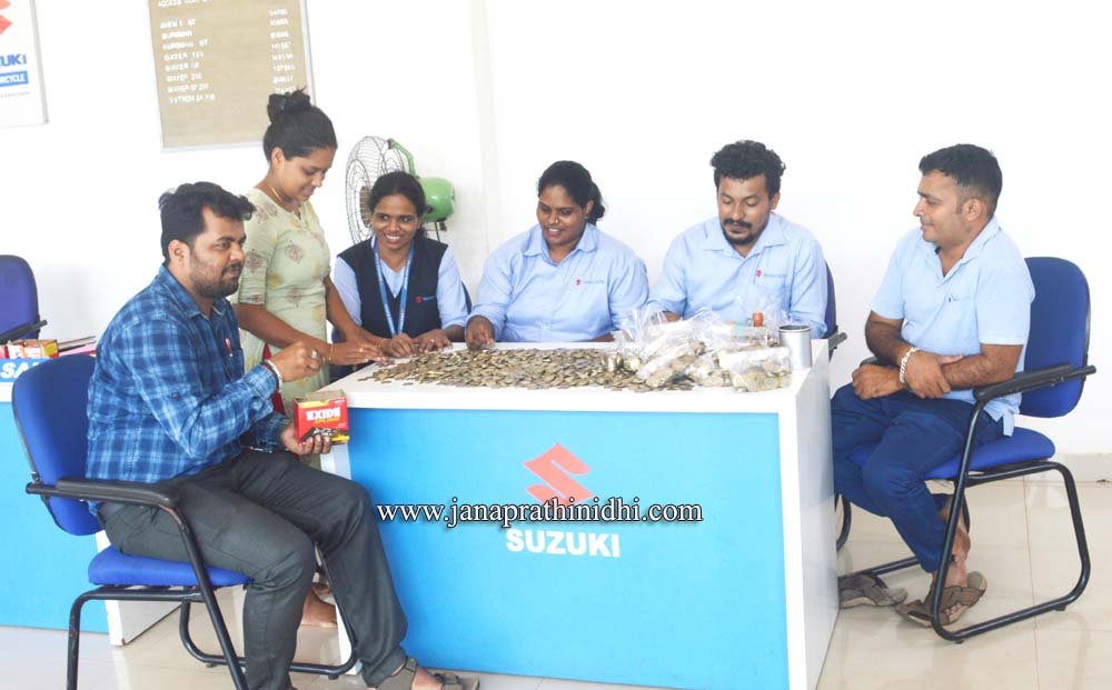ಒಂದು ಲಕ್ಷ ಮೌಲ್ಯವನ್ನು ನಾಣ್ಯಗಳ ಮೂಲಕ ತಗೆದುಕೊಳ್ಳುವ ಮೂಲಕ ಶ್ರೀ ವಿನಾಯಕ ಮೊಟಾರ್ಸ್ ಸುಜುಕಿ ಶೋರೂಂನ ರಾಧಾಕೃಷ್ಣ ಅವರು ಹೊಸ ಅನುಭವ ಪಡೆದಿದ್ದಾರೆ. ಹತ್ತು ರೂಪಾಯಿ ನಾಣ್ಯ ಒಂದು ಲಕ್ಷ ಮೌಲ್ಯವಾಗಲು 10 ಸಾವಿರ ನಾಣ್ಯ ಆಗುತ್ತದೆ. ಇದರ ಒಟ್ಟು ತೂಕ ಸುಮಾರು 80 ಕೆಜಿ ಆಗುತ್ತದೆ. ಇಷ್ಟೊಂದು ಪ್ರಮಾಣದ ನಾಣ್ಯವನ್ನು ಎಣಿಸುವುದು ಕೂಡಾ ಒಂದು ಸವಾಲೇ ಸರಿ. ಸಂಸ್ಥೆಯ ಮಾಲಕರು. ಸಿಬ್ಬಂದಿಗಳು ಇದನ್ನು ಖುಷಿಯಿಂದ ಸ್ವೀಕರಿಸಿದ್ದಾರೆ.