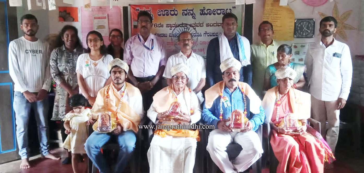 ಸಿದ್ಧಾಪುರ: 77ನೇ ಸ್ವಾತಂತ್ರ್ಯೋತ್ಸವದ ದಿನಾಚರಣೆಯ ಅಂಗವಾಗಿ ಪ್ರಗತಿಪರ ಕೃಷಿಕ ರಾಜೇಂದ್ರ ಬೆಚ್ಚಳ್ಳಿ ಇವರು ನನ್ನ ಊರು ನನ್ನ ಹೋರಾಟ ಹೊಸಂಗಡಿ ಗ್ರಾಮ ಪಂಚಾಯಿತಿ ವ್ಯಾಪ್ತಿಯ ಬೆಚ್ಚಳ್ಳಿ ಸರಕಾರಿ ಕಿರಿಯ ಪ್ರಾಥಮಿಕ ಶಾಲೆಯಲ್ಲಿ ನಮ್ಮೂರಿಗಾಗಿ ಹೋರಾಟ ಮಾಡಿದ ಹಿರಿಯ ಹಾಗೂ ಕಿರಿಯವರನ್ನು ಗುರುತಿಸಿ ಗೌರವಿಸುವ ಕಾರ್ಯಕ್ರಮ ಆಯೋಜಿಸಿದ್ದರು.