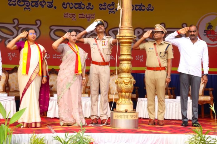 ಉಡುಪಿ: ಜಿಲ್ಲಾ ಮಟ್ಟದ ಕನ್ನಡ ರಾಜ್ಯೋತ್ಸವ ಆಚರಣಾ ಸಮಿತಿ ಉಡುಪಿ ಜಿಲ್ಲೆ ಇವರ ವತಿಯಿಂದ ೬೮ ನೇ ಜಿಲ್ಲಾ ಮಟ್ಟದ ಕನ್ನಡ ರಾಜ್ಯೋತ್ಸವ ದಿನಾಚರಣೆ ಕಾರ್ಯಕ್ರಮವು ಇಂದು ನಗರದ ಅಜ್ಜರಕಾಡು ಮಹಾತ್ಮ ಗಾಂಧಿ ಜಿಲ್ಲಾ ಕ್ರೀಡಾಂಗಣದಲ್ಲಿ ನಡೆಯಿತು. ಜಿಲ್ಲಾ ಉಸ್ತುವಾರಿ ಸಚಿವೆ ಲಕ್ಷ್ಮೀ ಆರ್ ಹೆಬ್ಬಾಳಕರ್ ಧ್ವಜಾರೋಹಣ ನೆರವೇರಿಸಿ, ಕರ್ನಾಟಕ ರಾಜ್ಯೋತ್ಸವದ ಸಂದೇಶ ನೀಡಿದರು.