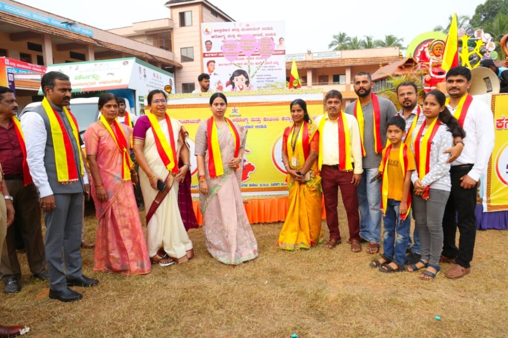 ಕಾರ್ಯಕ್ರಮಕ್ಕೂ ಮುನ್ನ ಬೋರ್ಡ್ ಹೈಸ್ಕೂಲ್ ನಿಂದ ಅಜ್ಜರಕಾಡು ಮಹಾತ್ಮ ಗಾಂಧಿ ಜಿಲ್ಲಾ ಕ್ರೀಡಾಂಗಣದವರೆಗೆ ನಡೆದ ಭುವನೇಶ್ವರಿ ದೇವಿಯ ಮೆರವಣಿಗೆಗೆ ಬೋರ್ಡ್ ಹೈಸ್ಕೂಲ್ ಆವರಣದಲ್ಲಿ ಮಹಿಳಾ ಮತ್ತು ಮಕ್ಕಳ ಅಭಿವೃದ್ಧಿ, ವಿಕಲಚೇತನರ ಹಾಗೂ ಹಿರಿಯ ನಾಗರಿಕರ ಸಬಲೀಕರಣ ಇಲಾಖೆ ಹಾಗೂ ಜಿಲ್ಲಾ ಉಸ್ತುವಾರಿ ಸಚಿವೆ ಲಕ್ಷ್ಮೀ ಆರ್ ಹೆಬ್ಬಾಳಕರ್ ಚಾಲನೆ ನೀಡಿದರು.