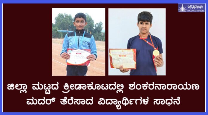 ಜಿಲ್ಲಾ ಮಟ್ಟದ ಕ್ರೀಡಾಕೂಟದಲ್ಲಿ ಶಂಕರನಾರಾಯಣ ಮದರ್ ತೆರೆಸಾದ ವಿದ್ಯಾರ್ಥಿಗಳ ಸಾಧನೆ