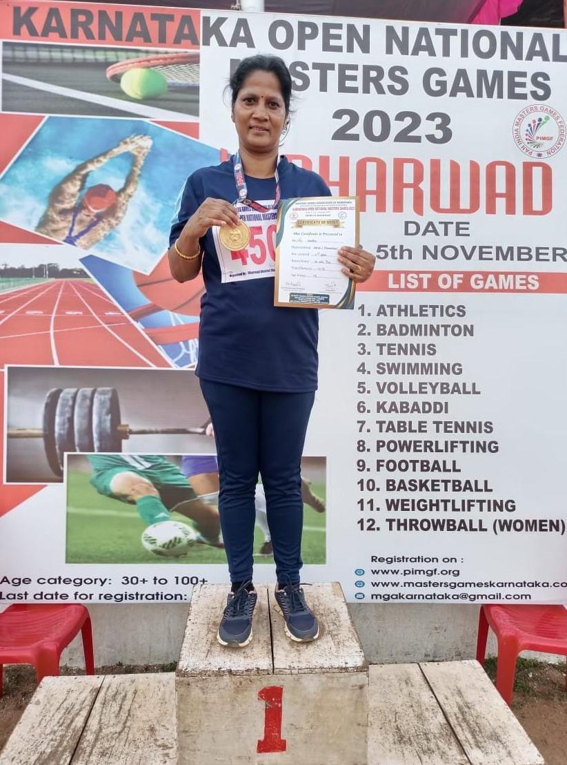 ಬ್ರಹ್ಮಾವರ: ಕರ್ನಾಟಕ ಓಪನ್ ನ್ಯಾಷನಲ್ ಮಾಸ್ಟರ್ ಗೇಮ್ಸ್ ವತಿಯಿಂದ ನವಂಬರ್ 4 ಮತ್ತು 5 ರಂದು ಧಾರವಾಡದ ಆರ್ ಎನ್ ಶೆಟ್ಟಿ ಕ್ರೀಡಾಂಗಣದಲ್ಲಿ ನಡೆದ ರಾಷ್ಟ್ರಮಟ್ಟದ ಹಿರಿಯರ ಕ್ರೀಡಾಕೂಟದಲ್ಲಿ ಕರ್ನಾಟಕ ರಾಜ್ಯವನ್ನು ಪ್ರತಿನಿಧಿಸಿದ ಬ್ರಹ್ಮಾವರದ ಶಿಕ್ಷಕಿ ಶ್ರೀಮತಿ ಗೀತಾ ಎ. ಶೆಟ್ಟಿ ಅವರು 60 ಮೀಟರ್ ಓಟದಲ್ಲಿ ಮತ್ತು 100 ಮೀಟರ್ ಓಟದಲ್ಲಿ ಚಿನ್ನದ ಪದಕ ವಿಜೇತರಾಗಿ ಅಮೆರಿಕಾದಲ್ಲಿ ನಡೆಯುವ ಅಂತರಾಷ್ಟ್ರೀಯ ಮಟ್ಟದ ಕ್ರೀಡಾಕೂಟಕ್ಕೆ ಕರ್ನಾಟಕ ರಾಜ್ಯದಿಂದ ಭಾಗವಹಿಸಲು ಆಯ್ಕೆಯಾಗಿರುತ್ತಾರೆ.