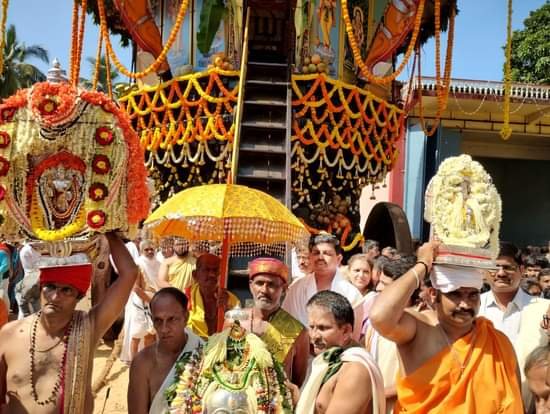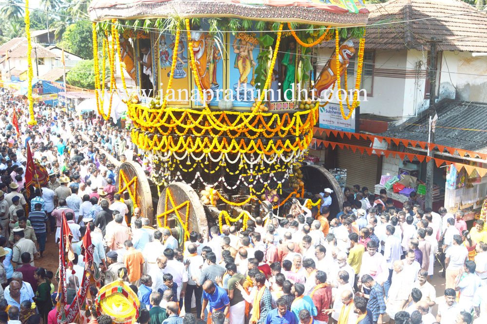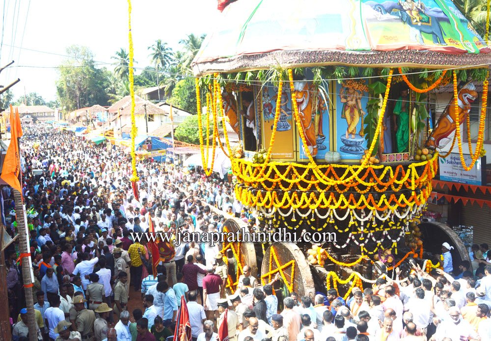ಧಾರ್ಮಿಕ ವಿಧಿವಿಧಾನಗಳು ನೆಡೆದು ದೇವರು ರಥೋಹಣವಾಗುತ್ತಿದ್ದಂತೆ ಭಕ್ತಾದಿಗಳ ಜಯಘೋಷ ಮುಗಿಲು ಮುಟ್ಟಿತು. ಭಕ್ತಾದಿಗಳ ಸಂಭ್ರಮಕ್ಕೆ ಎಡೆಯೇ ಇರಲಿಲ್ಲ. ಸಾವಿರಾರು ಸಂಖ್ಯೆಯಲ್ಲಿ ಭಕ್ತಾದಿಗಳು ರಥವನ್ನು ಎಳೆಯುವ ಮೂಲಕ ಪುನೀತರಾದರು. ರಥ ಎಳೆಯಲು ಅವಕಾಶ ಸಿಗದವರು ರಥವನ್ನು ಸ್ಪರ್ಶಿಸಿ ಧನ್ಯತೆ ಅನುಭವಿಸಿದರು.