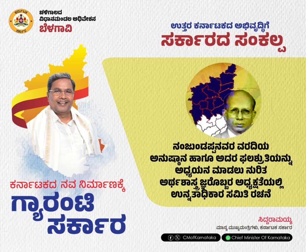ವಿಶೇಷವಾಗಿ ನಂಜುಂಡಪ್ಪನವರ ವರದಿಯ ಅನುಷ್ಠಾನ ಹಾಗೂ ಅದರ ಫಲಶ್ರುತಿಯನ್ನು ಅಧ್ಯಯನ ಮಾಡಲು ನುರಿತ ಅರ್ಥಶಾಸ್ತ್ರಜ್ಞರೊಬ್ಬರ ಅಧ್ಯಕ್ಷತೆಯಲ್ಲಿ ಹೈಪವರ್ [ಉನ್ನತಾಧಿಕಾರ ಸಮಿತಿ] ಕಮಿಟಿಯನ್ನು ರಚಿಸಲು ತೀರ್ಮಾನಿಸಿದ್ದೇವೆ ಎಂದು ಮುಖ್ಯಮಂತ್ರಿ ಸಿದ್ದರಾಮಯ್ಯ ತಿಳಿಸಿದ್ದಾರೆ.