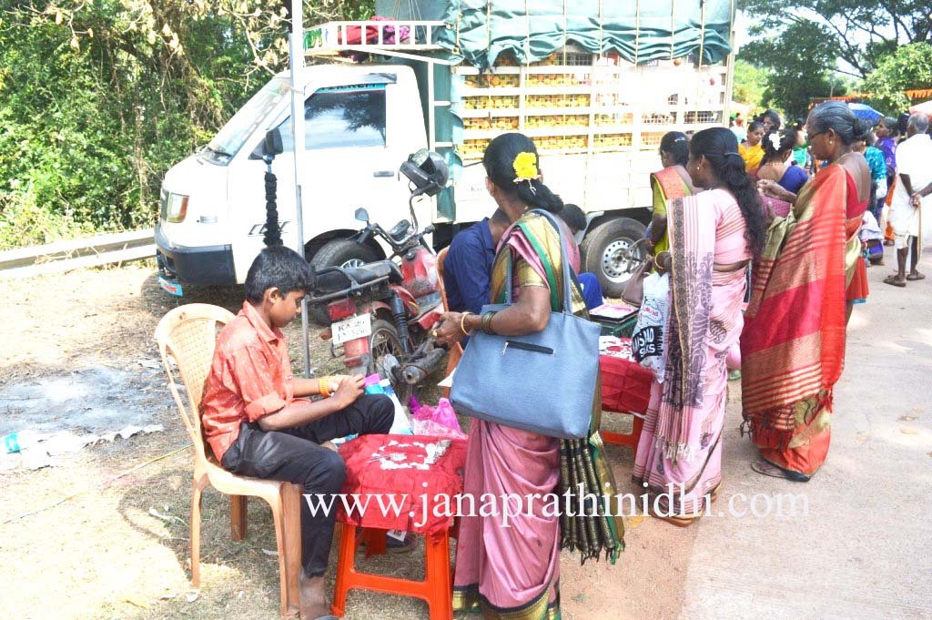 ಹಣ್ಣು ಕಾಯಿ, ಹೂ ಕಾಯಿ, ಕಲಶ ಸೇವೆ, ಮಂಗಳಾರತಿ, ಹರಕೆ ಸಮರ್ಪಣೆಯ ಧಾರ್ಮಿಕ ವಿಧಾನಗಳಿಗಾಗಿ ಸರದಿ ಸಾಲಿನಲ್ಲಿ ಭಕ್ತರು ಬಹುದೂರದಿಂದಲೇ ಸರದಿ ಸಾಲಿನಲ್ಲಿ ಆಗಮಿಸಿ ಹರಕೆ ಸಲ್ಲಿಸಿ ದೇವರ ದರ್ಶನ ಮಾಡಿ ಪುನೀತರಾದರು. ಮಧ್ಯಾಹ್ನ ಅನ್ನಸಂತರ್ಪಣೆಯಲ್ಲಿ ಸಾವಿರಾರು ಭಕ್ತಾದಿ ಅನ್ನಪ್ರಸಾದ ಸ್ವೀಕರಿಸಿದರು.