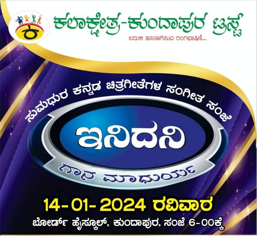 ಜ.14ರಂದು ಕುಂದಾಪುರದಲ್ಲಿ ‘ಇನಿದನಿ’ ಸುಮಧುರ ಕನ್ನಡ ಚಿತ್ರಗೀತೆಗಳ ಸಂಗೀತ ಸಂಜೆ : ಪ್ರಸಿದ್ಧ ಗಾಯಕ, ಗಾಯಕಿಯರು, ಕಲಾವಿದರು ಕುಂದಾಪುರಕ್ಕೆ