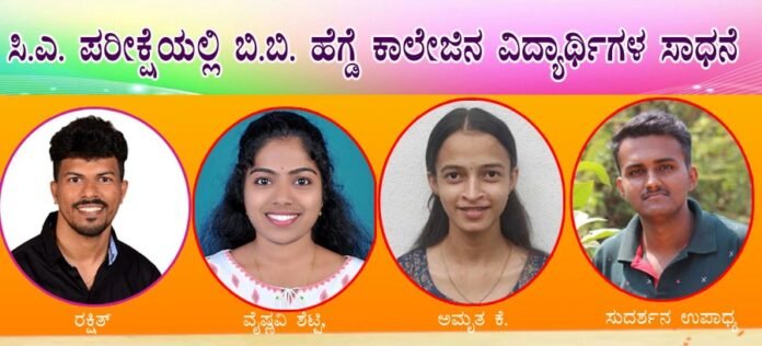 ಸಿ.ಎ. ಪರೀಕ್ಷೆಯಲ್ಲಿ ಬಿ.ಬಿ. ಹೆಗ್ಡೆ ಕಾಲೇಜಿನ ವಿದ್ಯಾರ್ಥಿಗಳ ಸಾಧನೆ