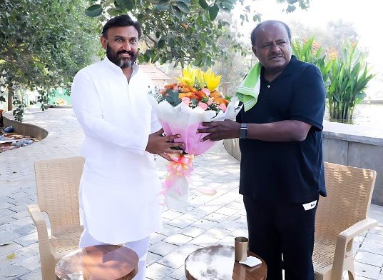 ಸುಧಾಕರ್‌ ಅವರು ಕುಮಾರ ಸ್ವಾಮಿ ಅವರಿಗೆ ಹೂ ಗುಚ್ಛ ನೀಡಿ ಕುಮಾರ ಸ್ವಾಮಿ ಅವರಿಗೆ ಸಂಕ್ರಾಂತಿಯ ಶುಭಾಶಯ ತಿಳಿಸಿದರು. ಆ ಬಳಿಕ ಇಬ್ಬರೂ ಕೆಲ ಹೊತ್ತು ಮಾತುಕತೆ ನಡೆಸಿದರು.