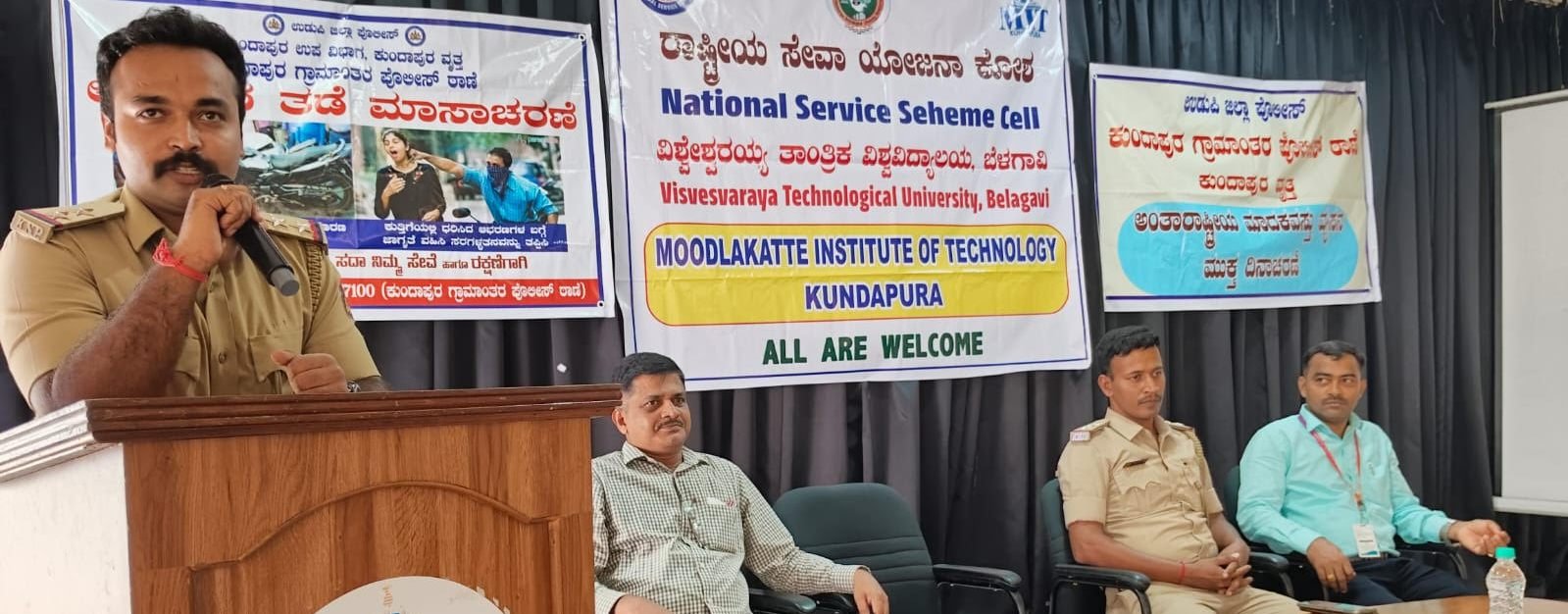 ಕುಂದಾಪುರ: ಮೂಡ್ಲಕಟ್ಟೆ ಇಂಜಿನಿಯರಿಂಗ್ ಕಾಲೇಜಿನ ರಾಷ್ಟ್ರೀಯ ಸೇವಾ ಯೋಜನಾ ಕೋಶ ಹಾಗೂ ಯೂತ್ ರೆಡ್ ಕ್ರಾಸ್ ಘಟಕದ ವತಿಯಿಂದ, ಅಪರಾಧ ತಡೆ ಮಾಸಾಚರಣೆ ಅಂಗವಾಗಿ ಉಪನ್ಯಾಸ ಕಾರ್ಯಕ್ರಮವನ್ನು ಆಯೋಜಿಸಲಾಗಿತ್ತು. ಮುಖ್ಯ ಅತಿಥಿಯಾಗಿ ಕುಂದಾಪುರ ರೂರಲ್ ಪೊಲೀಸ್ ಸ್ಟೇಷನ್ ನ ಪಿ ಎಸ್ ಐ ಆಗಿರುವ  ಪವನ್ ನಾಯಕ್ ಹಾಗೂ ಪಿ ಎಸ್ ಐ ನೂತನ್ ಡಿ ಇ ಅವರು ಆಗಮಿಸಿದ್ದರು.