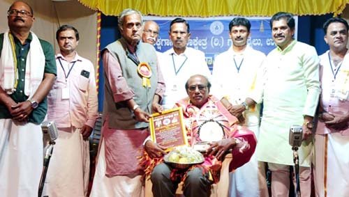 ಉಡುಪಿ: ಯಕ್ಷಗಾನ ರಂಗದಲ್ಲಿ ಅಪ್ರತಿಮ ಸೇವೆ ಸಲ್ಲಿಸಿದ್ದನ್ನು ಪರಿಗಣಿಸಿ ಪ್ರಸಿದ್ಧ ಯಕ್ಷಗಾನ ವೇಷಧಾರಿ, ಕವಿ ಎಂ.ಕೆ.ರಮೇಶ್ ಆಚಾರ್ಯ ಅವರಿಗೆ ದೆಹಲಿ ಕನ್ನಡಿಗ ಪ್ರತಿಕೆ ಸಂಪಾದಕ ಬಾ. ಸಾಮಗ ಅವರು ಉಡುಪಿ ಗುಂಡಿಬೈಲಿನ ಯಕ್ಷಗಾನ ಕಲಾಕ್ಷೇತ್ರ ಸ್ಥಾಪಿಸಿದ್ದ ಪ್ರತಿಷ್ಠಿತ ದಿ|| ನಿಟ್ಟೂರು ಬೋಜಪ್ಪ ಸುವರ್ಣ ಪ್ರಶಸ್ತಿಯನ್ನು ಫೆ. 17ರಂದು ಉಡುಪಿಯಲ್ಲಿ ನಡೆದ ಸಮಾರಂಭದಲ್ಲಿ ಪ್ರದಾನ ಮಾಡಿದರು.