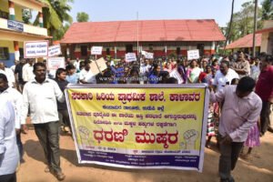 ಕಾಳಾವರ ಸರಕಾರಿ ಹಿರಿಯ ಪ್ರಾಥಮಿಕ ಶಾಲೆ ಸ್ಥಳ ಪರಬಾರೆಯಾಗುತ್ತಿರುವುದನ್ನು ಖಂಡಿಸಿ ಗ್ರಾ.ಪಂ. ಎದುರು ಧರಣಿ
