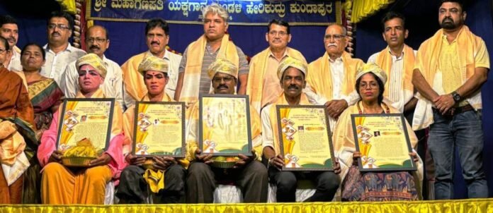 ಕುಂದಾಪುರ: ಶ್ರೀ ಮಹಾಗಣಪತಿ ಯಕ್ಷೋತ್ಸವ ಸಮಿತಿ ಹೇರಿಕುದ್ರು ಕನ್ನಡ ರಾಜ್ಯೋತ್ಸವದ ಅಂಗವಾಗಿ “ಯಕ್ಷೋತ್ಸವ ಹೇರಿಕುದ್ರು” ಕಾರ್ಯಕ್ರಮದಲ್ಲಿ “ಯಕ್ಷಸಿಂಚನ” ಪ್ರಶಸ್ತಿ ಪುರಸ್ಕಾರವನ್ನು ಶಂಕರ ಆನಗಳ್ಳಿ, ಜಗದೀಶ ಆಚಾರ್,  ಕುಶಲ ಕುಂದರ್, ಶ್ರೀಮತಿ ರಾಣಿ ಹೆಗ್ಡೆ ಹಾಗೂ ಸುರೇಶ್ ಮದ್ದುಗುಡ್ಡೆ ಇವರಿಗೆ ನೀಡಿ ಗೌರವಿಸಲಾಯಿತು.