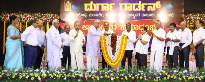 ಮಂದಾರ್ತಿ ಶೇಡಿಕೊಡ್ಲುವಿನಲ್ಲಿ ಅತ್ಯಾಧುನಿಕ ವಿನ್ಯಾಸದೊಂದಿಗೆ ನಿರ್ಮಾಣಗೊಂಡ ತೆರೆದ ಸಭಾಂಗಣ ದುರ್ಗಾ ಗಾರ್ಡನ್ ಉದ್ಘಾಟಿಸಿ ಮಾತನಾಡಿದರು.