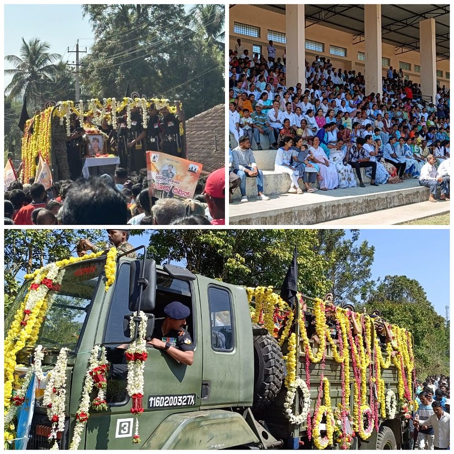 ಇದಕ್ಕೂ ಮೊದಲು ಕುಶಾಲನಗರದಿಂದ ಅವರ ಪಾರ್ಥಿವ ಶರೀರವನ್ನು ಮೆರವಣಿಗೆಯ ಮೂಲಕ್ಕೆ ಸ್ವಗ್ರಾಮಕ್ಕೆ ತರಲಾಯಿತು. ದಾರಿಯುದ್ದಕ್ಕೂ ನೂರಾರು ಮಂದಿ ಮೃತ ಯೋಧನಿಗೆ ಶ್ರದ್ಧಾಂಜಲಿ ಸಲ್ಲಿಸಿದರು. ಶಾಲಾ ವಿದ್ಯಾರ್ಥಿಗಳು, ಕಾಲೇಜು ವಿದ್ಯಾರ್ಥಿಗಳು, ಗ್ರಾಮಸ್ಥರು ಪುಷ್ಪ ನಮನ ಸಲ್ಲಿಸಿ ಕಂಬನಿ ಮಿಡಿದರು.