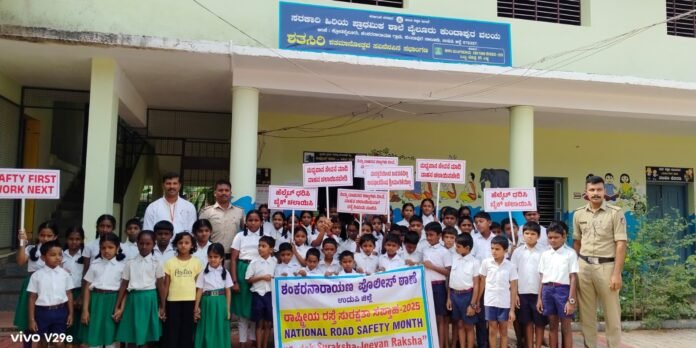 ರಾಷ್ಟ್ರೀಯ ರಸ್ತೆ ಸುರಕ್ಷಾ ಸಪ್ತಾಹ 2025ರ ಮಾಹಿತಿ ಕಾರ್ಯಕ್ರಮವು ನಡೆಯಿತು. ಸಂಪನ್ಮೂಲ ವ್ಯಕ್ತಿಯಾಗಿ ಭಾಗವಹಿಸಿ ಮಕ್ಕಳಿಗೆ ರಸ್ತೆ ಸುರಕ್ಷಾ ನಿಯಮಗಳನ್ನು ತಿಳಿಸುತ್ತ ಮಾತನಾಡಿದ ಶಂಕರನಾರಾಯಣ ಆರಕ್ಷಕ ಠಾಣೆಯ ಠಾಣಾಧಿಕಾರಿಗಳಾದ ಶಂಭುಲಿಂಗಯ್ಯ ಎಮ್ ಇ.ಯವರು “ರಸ್ತೆಯ ನಿಯಮಗಳನ್ನು ಸರಿಯಾಗಿ ಪಾಲಿಸಿದ್ದಲ್ಲಿ ಅಪಘಾತಗಳನ್ನು ತಡೆಯಬಹುದು” ಎಂದು ಅಭಿಪ್ರಾಯ ಪಟ್ಟರು.