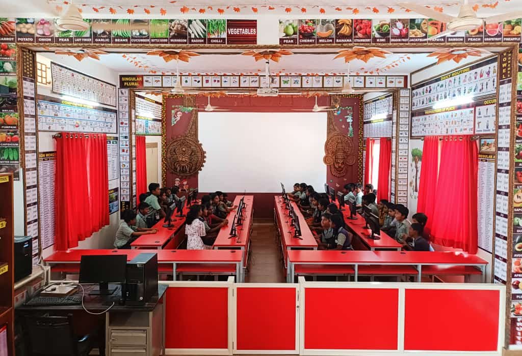ಲಾಂಗ್ವೇಜ್‌ ಲ್ಯಾಬ್‌ ಒಳಗೆ ಕಾಲಿಟ್ಟರೇ, ವಿದ್ಯಾರ್ಥಿಗಳ ಕಲಿಕೆಗಾಗಿ ಟೇಬಲ್ಸ್‌ ಮತ್ತು ಚೇರ್ಸ್‌ ಇಡಲಾಗಿದೆ. ಅದರಲ್ಲೂ ಸೃಷ್ಟಿಶೀಲತೆಯನ್ನು ಹೇರಳವಾಗಿ ಬಳಸಿಕೊಳ್ಳಲಾಗಿದೆ. ನಾಲ್ಕು ಟೇಬಲ್‌ಗಳನ್ನು ಜೋಡಿಸಿದರೇ, ಗುಂಪು ಕಲಿಕೆಗಾಗಿ ಬೇಕಾಗುವಂತೆ ರೌಂಡ್‌ ಟೇಬಲ್‌ ಆಗಿ ಪರಿವರ್ತನೆಯಾಗುತ್ತದೆ. ವಿದ್ಯಾರ್ಥಿಗಳು ಅಲ್ಲಿ ಸಮೂಹ ಕಲಿಕೆಯನ್ನು ಮಾಡಬಹುದಾಗಿದೆ. ಅಲ್ಲೇ ಪಕ್ಕದಲ್ಲಿ ಮೊದಲ ಬಾರಿಗೆ ನೋಡಿದರೇ, ಕಂಪ್ಯೂಟರ್‌ ಲ್ಯಾಬ್‌ ಎಂದೇ ಅಂದುಕೊಳ್ಳುವಂತಿರುವ ಅಪ್ಪಟ್ಟ ಇಂಗ್ಲೀಷ್‌ ಲ್ಯಾಂಗ್ವೇಜ್‌ ಲ್ಯಾಬ್‌ ನಮ್ಮ ಕಣ್ಮುಂದೆ ಅಚ್ಚರಿ ಮೂಡಿಸುತ್ತದೆ. ವಿದ್ಯಾರ್ಥಿ ಸ್ನೇಹಿ ಪಠ್ಯಕ್ರಮಗಳುಳ್ಳ ಸಾಫ್ಟ್‌ ವೇರ್‌ ಮೂಲಕ ಇಲ್ಲಿ ವಿದ್ಯಾರ್ಥಿಗಳು ಇಂಗ್ಲೀಷ್‌ ಭಾಷೆಯನ್ನು ಸರಳವಾಗಿ, ಸುಲಭವಾಗಿ ಕಲಿಯುತ್ತಾರೆ.  ಸುವ್ಯವಸ್ಥಿತ ಕಂಪ್ಯೂಟರ್‌ ಸಿಸ್ಟಮ್‌ಗಳು, ಪ್ರಾಜೆಕ್ಟರ್‌, ವಿದ್ಯಾರ್ಥಿ ಆಧಾರಿತ ನಿಯತಕಾಲಿಕೆಗಳು, ಇಂಗ್ಲೀಷ್‌ ವ್ಯಾಕರಣ, ಭಾಷಾ ಶುದ್ಧೀಕರಣಕ್ಕೆ ಬೇಕಾಗಿ ಬೇರೆ ಬೇರೆ ಮಾದರಿಯಲ್ಲಿ ಅಳವಡಿಸಲಾಗಿರುವ ಕಲಿಕಾ ಶಾಸ್ತ್ರದ ಹೊಸ ಸಾಧ್ಯತೆಗಳು ಹೇರಳವಾಗಿ ಕಾಣಸಿಗುತ್ತವೆ.