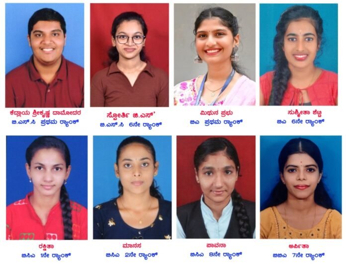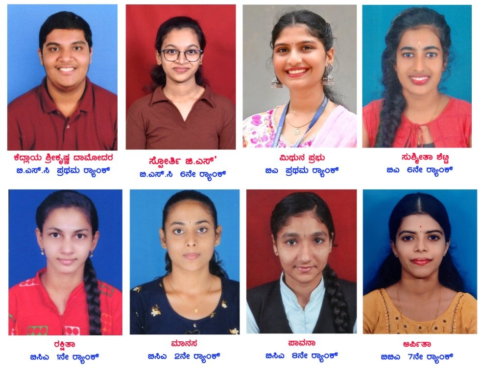 ಬಿ.ಎ ಪದವಿ ಪರೀಕ್ಷೆಯಲ್ಲಿ ಕುಂಭಾಶಿಯ ಮನೋಹರ ಪ್ರಭು ಮತ್ತು ಮಲ್ಲಿಕಾ ಪ್ರಭು ಅವರ ಪುತ್ರಿ ಮಿಥುನ ಪ್ರಭು ಅವರಿಗೆ ಪ್ರಥಮ Rank ಕುಂದಾಪುರದ ಮಂಗಲಪಾಂಡೆ ರಸ್ತೆಯ ಶಿವರಾಮ ಶೆಟ್ಟಿ ಮತ್ತು ಸರಸ್ವತಿ ಶೆಟ್ಟಿ ಅವರು ಪುತ್ರಿ ಸುಶ್ಮಿತಾ ಶೆಟ್ಟಿ ಅವರಿಗೆ ಆರನೇ Rank ದೊರೆತಿದೆ.