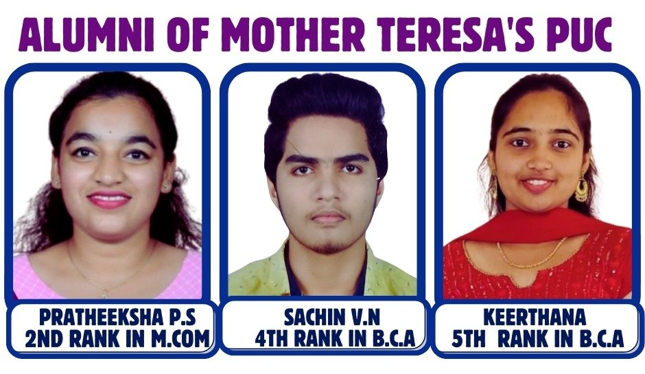 ಮದರ್ ತೆರೇಸಾಸ್ ಪದವೀಪೂರ್ವ ಕಾಲೇಜಿನ ಹಳೆ ವಿದ್ಯಾರ್ಥಿಗಳಿಗೆ ರ್‍ಯಾಂಕ್