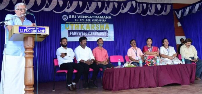 ಕುಂದಾಪುರ: ಶ್ರೀ ವೆಂಕಟರಮಣ ಪದವಿ ಪೂರ್ವ ಕಾಲೇಜಿನ ಸಭಾಂಗಣದಲ್ಲಿ ಮಾರ್ಚ್ 21 ರಂದು ಪ್ರಥಮ ಪಿಯುಸಿ ವಿದ್ಯಾರ್ಥಿಗಳು ದ್ವಿತೀಯ ಪಿಯುಸಿ ವಿದ್ಯಾರ್ಥಿಗಳಿಗೆ ಉತ್ಕರ್ಷ ಎನ್ನುವ ಶೀರ್ಷಿಕೆ ಯಡಿಯಲ್ಲಿ ಶುಭ ವಿದಾಯ ಕಾರ್ಯಕ್ರಮವನ್ನು ಆಯೋಜಿಸಿದ್ದರು.