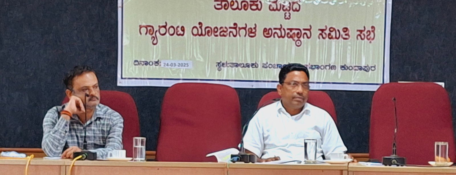 ಕುಂದಾಪುರ ತಾಲೂಕು ಪಂಚಾಯತ್ ಸಭಾಂಗಣದಲ್ಲಿ ಸೋಮವಾರ ನಡೆದ ಗ್ಯಾರಂಟಿ ಯೋಜನೆಗಳ ತಾಲೂಕು ಮಟ್ಟದ ಅನುಷ್ಟಾನ ಸಮಿತಿಯ ಸಭೆಯ ಅಧ್ಯಕ್ಷತೆ ವಹಿಸಿ ಮಾತನಾಡಿದರು.