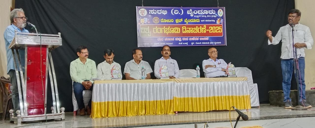 ಬೈಂದೂರು: ಇಲ್ಲಿನ ರಂಗಭೂಮಿ ಹಾಗೂ ಸಾಂಸ್ಕೃತಿಕ ವೇದಿಕೆಯಾದ ಸುರಭಿ ಸಂಸ್ಥೆಯ ಆಶ್ರಯದಲ್ಲಿ ಬೈಂದೂರು ರೋಟರಿಯ ಸಹಕಾರದಲ್ಲಿ “ವಿಶ್ವ ರಂಗಭೂಮಿ” ದಿನಾಚರಣೆಯನ್ನು ಆಚರಿಸಲಾಯಿತು.