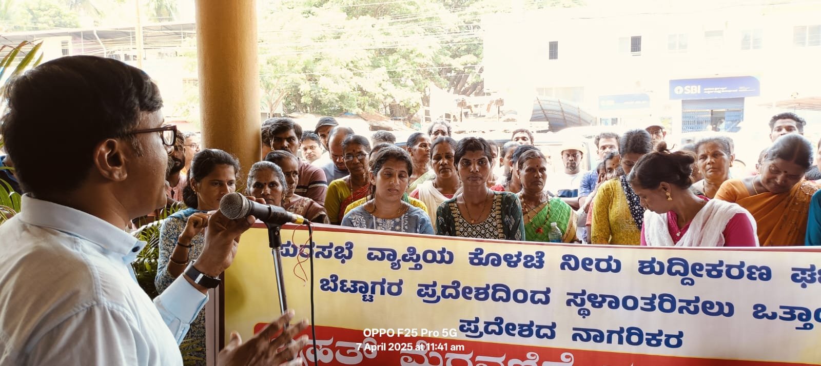 ಸಮಿತಿ ಸಂಚಾಲಕ ರವಿ ವಿ ಎಂ ಮಾತನಾಡಿ, ಬೆಟ್ಟಾಗರದ ಸ್ಥಳೀಯರು ಶುದ್ಧೀಕರಣದ ಮುಖ್ಯ ಘಟಕವನ್ನು ೫೦೦ ಮೀಟರ್ ಮುಂದಕ್ಕೆ ಸ್ದಳಾಂತರಗೊಳಿಸಬೇಕು ಎಂದು ಹಲವು ಬಾರಿ ಮನವಿ ಮಾಡಿದರೂ ಪುರಸಭೆ ಜನರನ್ನು ರಕ್ಷಿಸುವ ಕೆಲಸ ಮಾಡಿಲ್ಲ ಬದಲಾಗಿ ಅಲ್ಲಿಯೇ ಮಾಡುತ್ತೇವೆ ಎಂದು ತೀರ್ಮಾನ ಮಾಡಿರುವುದು ಒಪ್ಪಲು ಸಾಧ್ಯವಿಲ್ಲ ಹೋರಾಟ ತೀವ್ರ ಗೊಳಿಸಬೇಕಾಗಿದೆ ಎಂದರು.
