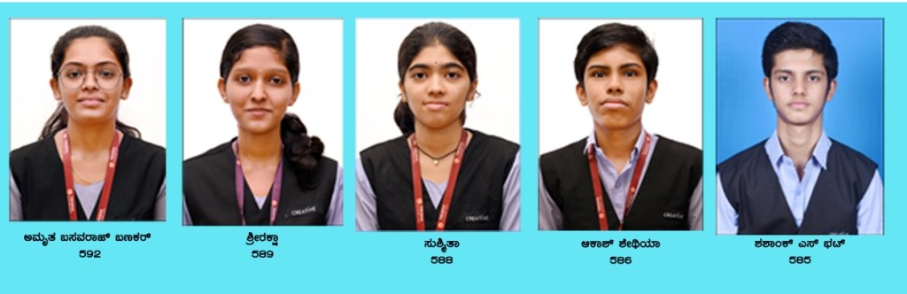 ಕಾಲೇಜಿನ ವಿಜ್ಞಾನ ವಿಭಾಗದ ವಿದ್ಯಾರ್ಥಿನಿ ಅಮೃತ ಬಸವರಾಜ್ ಬಣಕರ್ 592 ಅಂಕಗಳೊಂದಿಗೆ ರಾಜ್ಯಕ್ಕೆ 8ನೇ ಸ್ಥಾನ ಪಡೆದು ಸಂಸ್ಥೆಗೆ ಮತ್ತು ಹೆತ್ತವರಿಗೆ ಕೀರ್ತಿ ತಂದಿದ್ದಾರೆ. ಶ್ರೀರಕ್ಷಾ 589 ಅಂಕ, ಸುಶ್ಮಿತಾ 588 ಅಂಕ, ಆಕಾಶ್ ಶೇಥಿಯಾ 586 ಅಂಕ, ಶಶಾಂಕ್ ಎಸ್ ಭಟ್ 585 ಅಂಕಗಳನ್ನು ಗಳಿಸಿ ಅತ್ಯುನ್ನತ ದರ್ಜೆಯಲ್ಲಿ ತೇರ್ಗಡೆ ಹೊಂದಿದ್ದಾರೆ.