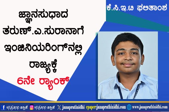 ಕೆ.ಸಿ.ಇಟಿ ಫಲಿತಾಂಶ ಜ್ಞಾನಸುಧಾದ ತರುಣ್.ಎ.ಸುರಾನಾಗೆ ಇಂಜಿನಿಯರಿಂಗ್‍ನಲ್ಲಿ ರಾಜ್ಯಕ್ಕೆ 6ನೇ Rank