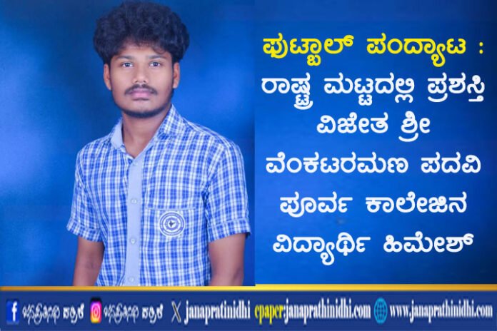 ಫುಟ್ಬಾಲ್ ಪಂದ್ಯಾಟ : ರಾಷ್ಟ್ರ ಮಟ್ಟದಲ್ಲಿ ಪ್ರಶಸ್ತಿ ವಿಜೇತ ಶ್ರೀ ವೆಂಕಟರಮಣ ಪದವಿ ಪೂರ್ವ ಕಾಲೇಜಿನ ವಿದ್ಯಾರ್ಥಿ  ಹಿಮೇಶ್