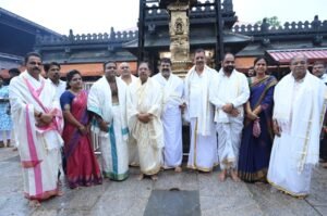 ಕೊಲ್ಲೂರು, ಜೂ.14: ಕೊಲ್ಲೂರು ಶ್ರೀ ಮೂಕಾಂಬಿಕಾ ದೇವಸ್ಥಾನಕ್ಕೆ ಗೃಹ ಸಚಿವ ಡಾ.ಜಿ.ಪರಮೇಶ್ವರ ಭೇಟಿ ನೀಡಿ ವಿಶೇಷ ಪೂಜೆ ಸಲ್ಲಿಸಿದರು.