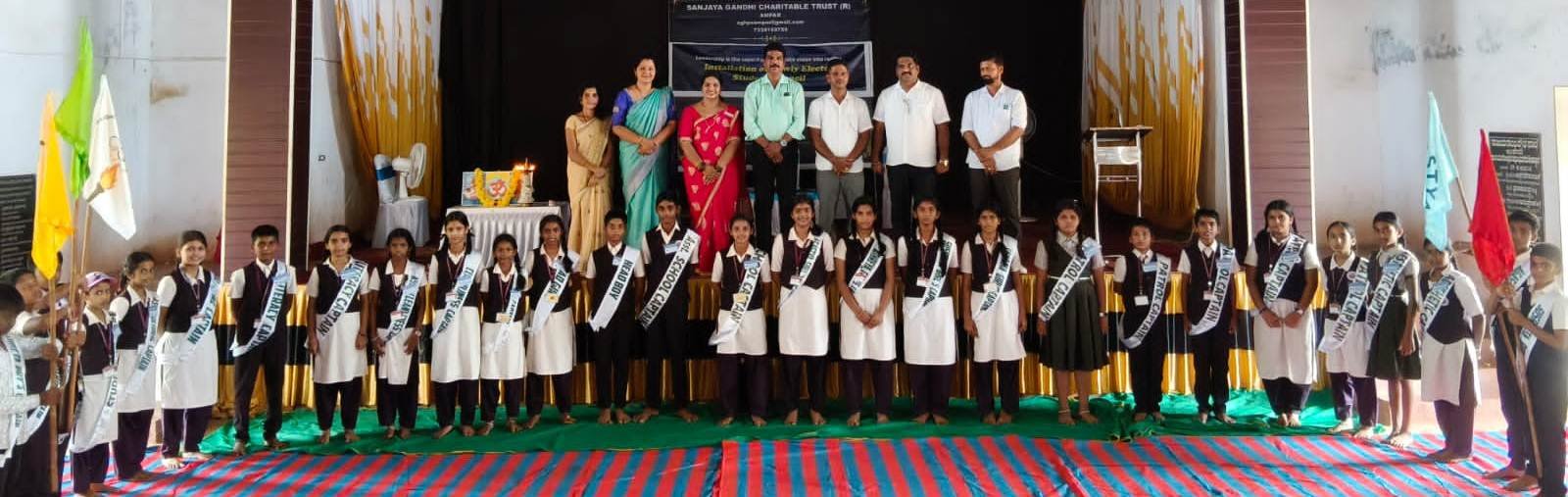 ಶಾಲಾ ಸಂಸತ್ ಚುನಾಯಿತ ಪ್ರತಿನಿಧಿಗಳಿಗೆ ಶಾಲಾ ಧ್ವಜ ಹಸ್ತಾಂತರ ಜೊತೆಗೆ, ಲಾಂಛನ ನೀಡಿ ಗೌರವಿಸಲಾಯಿತು. ಶಾಲಾ ಮಕ್ಕಳಲ್ಲಿ ಪ್ರಜಾಪ್ರಭುತ್ವದ ಹಿರಿಮೆ, ಶಿಸ್ತುಬದ್ಧ ಜೀವನ ರೂಪಿಸಿಕೊಳ್ಳುವ ಹಾಗೂ ನಾಯಕತ್ವ ಗುಣ ಬೆಳೆಸಿ ಕೊಳ್ಳುವ ಮೂಲ ಉದ್ದೇಶದಿಂದ ಶಾಲಾ ಸಂಸತ್ ಚುನಾವಣೆಯನ್ನು ನೈಜ ಸಾರ್ವಜನಿಕ ಚುನಾವಣಾ ಮಾದರಿಯಲ್ಲಿ ನಡೆಸಲಾಯಿತು. ಶಾಲಾ ನಾಯಕಿಯಾಗಿ 8ನೇಯ ತರಗತಿಯ ವಿದ್ಯಾರ್ಥಿನಿ ಸನ್ವಿತ, ಹಾಗೂ ಉಪನಾಯಕರಾಗಿ 8ನೇ ತರಗತಿ ವಿದ್ಯಾರ್ಥಿ ಪ್ರಶೀಲ್ ಪ್ರಮಾಣ ವಚನ ಸ್ವೀಕರಿಸಿದರು.