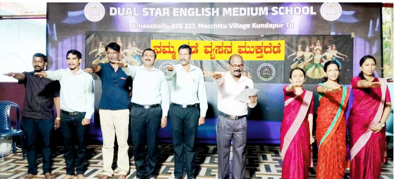 ಅವರು ಡ್ಯುಯಲ್ ಸ್ಟಾರ್ ಶಾಲೆ ಅಮಾಸೆಬೈಲು ಇಲ್ಲಿ ನಡೆದ ವ್ಯಸನ ಮುಕ್ತ ಭಾರತ ಇದರ ಪ್ರಯುಕ್ತ ಪ್ರಮಾಣ ವಚನ ಬೋಧಿಸುತ್ತಾ ನಾವೆಲ್ಲರೂ ಒಟ್ಟಾಗಿ ನಮ್ಮ ಜಿಲ್ಲೆ, ರಾಜ್ಯವನ್ನು ಮಾದಕ ವಸ್ತು ಮುಕ್ತಗೊಳಿಸಲು ದೃಢ ನಿರ್ಧಾರ ತೆಗೆದುಕೊಳ್ಳೋಣ ಮಾದಕ ವಸ್ತು ಮುಕ್ತಗೊಳಿಸೋಣ ಎಂದರು.
