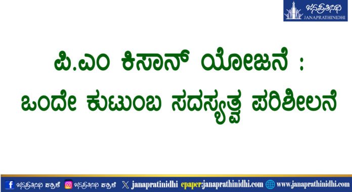 ಪಿ.ಎಂ ಕಿಸಾನ್ ಯೋಜನೆ : ಒಂದೇ ಕುಟುಂಬ ಸದಸ್ಯತ್ವ ಪರಿಶೀಲನೆ