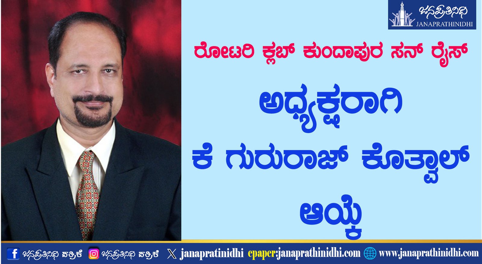 ರೋಟರಿ ಕ್ಲಬ್ ಕುಂದಾಪುರ ಸನ್ ರೈಸ್ ಅಧ್ಯಕ್ಷರಾಗಿ ಕೆ ಗುರುರಾಜ್ ಕೊತ್ವಾಲ್ ಆಯ್ಕೆ