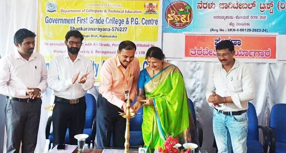 ನೆರಳು ಚಾರಿಟೇಬಲ್ ಟ್ರಸ್ಟ್‌ನ ಸದಸ್ಯ ರಾಜೀವ್ ಪೂಜಾರಿ, ಭಾಸ್ಕರ್ ಪೂಜಾರಿ ಉಪಸ್ಥಿತರಿದ್ದರು. ವಿದ್ಯಾರ್ಥಿನಿ ಸುಮ ಮತ್ತು ಐಶ್ವರ್ಯ ಪ್ರಾರ್ಥಿಸಿದರು. ಆಂತರಿಕ ಗುಣಮಟ್ಟ ಭರವಸೆ ಕೋಶದ ಸಂಚಾಲಕ ಡಾ. ವಸಂತ ಜಿ ಸ್ವಾಗತಿಸಿದರು. ನೆರಳು ಚಾರಿಟೇಬಲ್ ಟ್ರಸ್ಟ್‌ನ ಅಧ್ಯಕ್ಷ ಕೆ ರಾಧಾಕೃಷ್ಣ ಕ್ರಮಧಾರಿ ಪ್ರಾಸ್ತಾವಿಕ ಮಾತುಗಳನ್ನಾಡಿದರು. ಕನ್ನಡ ಸಹಾಯಕ ಪ್ರಾಧ್ಯಾಪಕ ಮಹಾಲಿಂಗಪ್ಪ ವಂದಿಸಿದರು. ಕನ್ನಡ ಸಹಾಯಕ ಪ್ರಾಧ್ಯಾಪಕ ಸಚಿನ್ ಕಾರ್ಯಕ್ರಮ ನಿರೂಪಿಸಿದರು.