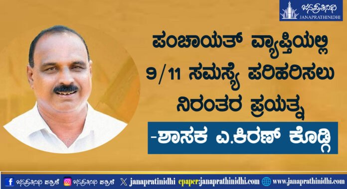 ಪಂಚಾಯತ್ ವ್ಯಾಪ್ತಿಯಲ್ಲಿ 9/11 ಸಮಸ್ಯೆ ಪರಿಹರಿಸಲು ನಿರಂತರ ಪ್ರಯತ್ನ-ಶಾಸಕ ಎ.ಕಿರಣ್ ಕೊಡ್ಗಿ