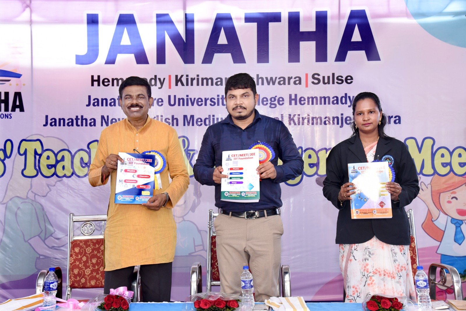 ಕಿರಿಮಂಜೇಶ್ವರ: ಆಗಸ್ಟ್ 2ರಂದು ಜನತಾ ನ್ಯೂ ಇಂಗ್ಲೀಷ್ ಮೀಡಿಯಂ ಸ್ಕೂಲ್ ನಲ್ಲಿ ನೀಟ್, ಸಿಇಟಿ, ಐಐಟಿ ಮತ್ತು ಜೆಇಇ ಪರೀಕ್ಷೆಗಳಿಗೆ ತಯಾರಿ ನಡೆಸಲು ಅನುಕೂಲಕರವಾದ ಪುಸ್ತಕಗಳನ್ನು  ರಾಷ್ಟ್ರೀಯ ಮಟ್ಟದ ವ್ಯಕ್ತಿತ್ವ ವಿಕಸನ ತರಬೇತುದಾರರಾದ ರಾಜೇಂದ್ರ ಭಟ್. ಕೆ ಈ ಬಿಡುಗಡೆಗೊಳಿಸಿದರು. ಹಾಗೆಯೇ ವಿದ್ಯಾರ್ಥಿಗಳನ್ನುದ್ದೇಶಿಸಿ “ಇಂದು ಜಗತ್ತು ಸ್ಪರ್ಧಾತ್ಮಕವಾಗಿ ಮುನ್ನುಗ್ಗುತ್ತಿದ್ದು, ಕೇವಲ ವಿಷಯದ ಜ್ಞಾನದ ಜೊತೆಯಲ್ಲಿ ಸ್ಪರ್ಧಾತ್ಮಕ ಪರೀಕ್ಷೆಗಳಲ್ಲಿ ಕೇಳಲಾಗುವ ಪ್ರಶ್ನೆಗಳಿಗೆ ಸಮಂಜಸವಾದ ಉತ್ತರಗಳನ್ನು ಬಿಡಿಸಲು ನಾವು ಸಮರ್ಥರಾಗಿರಬೇಕು. ಇಂದು ಬಿಡುಗಡೆ ಮಾಡಲಾಗಿರುವ ಪುಸ್ತಕಗಳು ಅತ್ಯಂತ ಮೌಲಿಕವಾಗಿದ್ದು, ವಿದ್ಯಾರ್ಥಿಗಳು ಇದರ ಪ್ರಯೋಜನವನ್ನು ಪಡೆದುಕೊಳ್ಳಬೇಕು” ಎಂದರು.