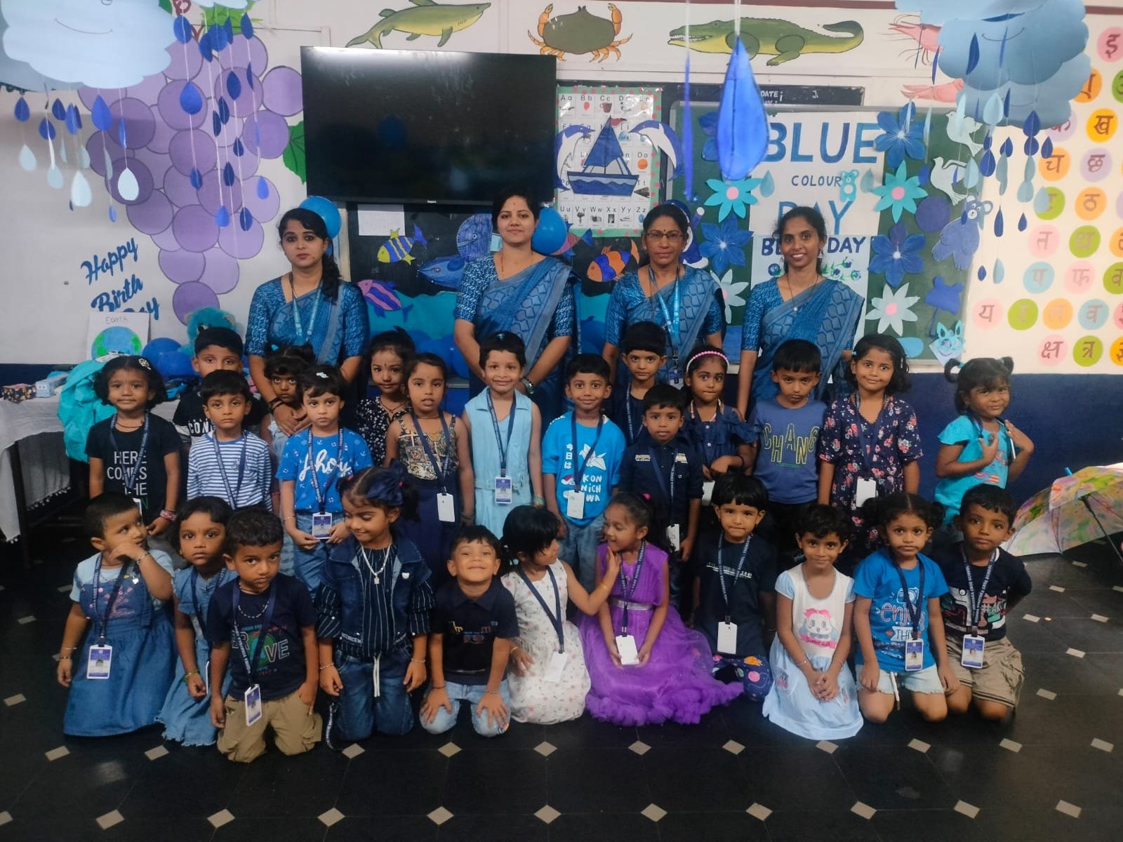 ವಿದ್ಯಾರ್ಥಿಗಳು ಮಳೆಗಾಲಕ್ಕೆ ಸಂಬಂಧಿಸಿದ ವಿವಿಧ ಚಟುವಟಿಕೆಗಳನ್ನು ಮಾಡಿ ಆನಂದಿಸಿದರು. ಪೇಪರ್ ಬೋಟ್ ಹಾಗೂ ನೃತ್ಯಗಳನ್ನು ಮಾಡಿ ಮಳೆಗಾಲದ ಆಟಗಳ ಮಹತ್ವವನ್ನು ಅರಿತುಕೊಂಡರು. ವಿದ್ಯಾರ್ಥಿಗಳು ಹಾಗೂ ಶಿಕ್ಷಕರು ನೀಲಿ ಬಣ್ಣದ ಉಡುಗೆಗಳನ್ನು ತೊಟ್ಟು ಸಂಭ್ರಮಿಸಿದರು. ತರಗತಿ ಕೋಣೆಗಳನ್ನು ನೀಲಿ ಬಣ್ಣದ ಅಲಂಕಾರಿಕ ವಸ್ತುಗಳಿಂದ ಅಲಂಕರಿಸಲಾಯಿತು. ಮಕ್ಕಳಿಗೆ ವಿವಿಧ ಬಣ್ಣಗಳ ಅರಿವು ಮೂಡಿಸುವ ಉದ್ದೇಶದಿಂದ ಪ್ರತೀ ತಿಂಗಳಿಗೊಮ್ಮೆ ವಿವಿಧ ಬಣ್ಣಗಳಿಗೆ ಸಂಬಂಧಿಸಿದ ಕಾರ್‍ಯಕ್ರಮ ಹಾಗೂ ಚಟುವಟಿಕೆಗಳನ್ನು ಆಯೋಜಿಸಿ ಮಕ್ಕಳಲ್ಲಿ ಸೃಜನಾತಮಕ ಕಲಿಕೆಗೆ ಒತ್ತು ನೀಡಲಾಗುತ್ತದೆ.