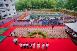 ಮೈದಾನದಲ್ಲಿ ಮೆಲ್ಲನೇ ಬೀಸುತ್ತಿದ್ದ ತಂಗಾಳಿಯ ವಾತಾವರಣದಲ್ಲಿ ವಿದ್ಯಾರ್ಥಿಗಳು ಮೊಳಗಿಸಿದ ’ವಂದೇ ಮಾತರಂ..’ ದೇಶಭಕ್ತಿಯನ್ನು ಉದ್ದೀಪಿಸಿತು.೨ಸಾವಿರ ವಿದ್ಯಾರ್ಥಿಗಳು ತಮ್ಮ ಕೈಯಲ್ಲಿ ಬಾವುಟ ಹಿಡಿದುಕೊಂಡು ’ವಿಜಯೀ ವಿಶ್ವ ತಿರಂಗಾ ಪ್ಯಾರಾ’ ಗೀತೆಯನ್ನು ಹಾಡಿ ಸಂಭ್ರಮಿಸಿದರು.
