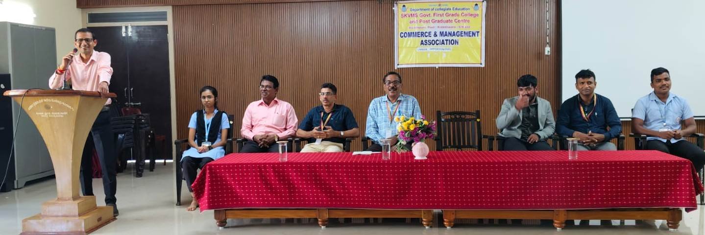 ಕಾರ್ಯಕ್ರಮದ ಅಧ್ಯಕ್ಷತೆಯನ್ನು ಕಾಲೇಜಿನ ಪ್ರಾಂಶುಪಾಲರಾದ ರಾಮರಾಯ ಆಚಾರ್ಯ ರವರು ವಹಿಸಿದರು.  ನಾಗರಾಜ ಯು. ಐಕ್ಯೂ‌ಎಸಿ ಸಂಚಾಲಕರು, ನಾಗರಾಜ ವೈದ್ಯ ಎಂ. ವಿದ್ಯಾರ್ಥಿ ಕ್ಷೇಮಪಾಲನಾಧಿಕಾರಿ ಕಾರ್ಯಕ್ರಮದಲ್ಲಿ ಉಪಸ್ಥಿತರಿದ್ದರು. ವಾಣಿಜ್ಯಶಾಸ್ತ್ರ ವಿಭಾಗದ ಮುಖ್ಯಸ್ಥರಾದ ಡಾ. ಶೇಖರ ಬಿ. ರವರು ಅತಿಥಿಗಳನ್ನು ಸ್ವಾಗತಿಸಿ ಪ್ರಾಸ್ತಾವಿಕ ಮಾತುಗಳನ್ನಾಡಿದರು. ವಿದ್ಯಾರ್ಥಿ ಪ್ರತಿನಿಧಿಗಳಾದ  ಭೂಮಿಕಾ ಹಾಗೂ ಸುದೀಪ ಇವರು ವೇದಿಕೆಯಲ್ಲಿ ಉಪಸ್ಥಿತರಿದ್ದರು