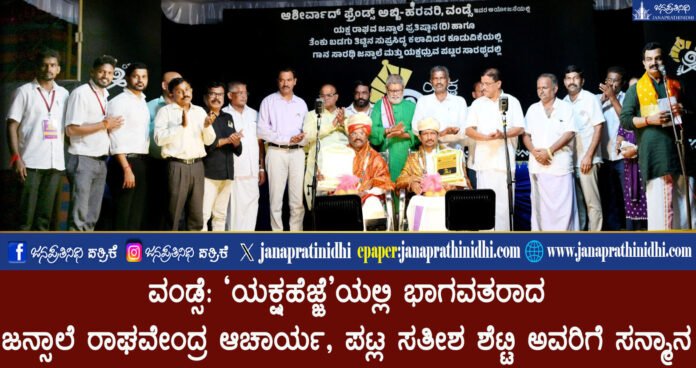 ವಂಡ್ಸೆ: ‘ಯಕ್ಷಹೆಜ್ಜೆ’ಯಲ್ಲಿ ಭಾಗವತರಾದ ಜನ್ಸಾಲೆ ರಾಘವೇಂದ್ರ ಆಚಾರ್ಯ, ಪಟ್ಲ ಸತೀಶ ಶೆಟ್ಟಿ ಅವರಿಗೆ ಸನ್ಮಾನ