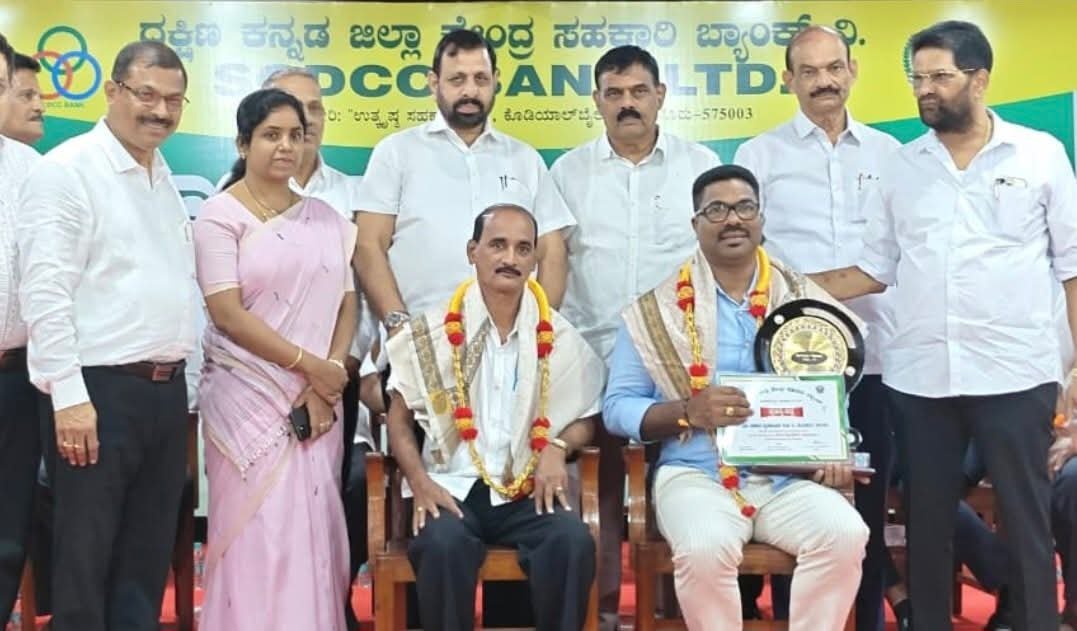 ಆ.30ರಂದು ಮಂಗಳೂರಿನಲ್ಲಿ  ಬ್ಯಾಂಕಿನ ಸಭಾಭವನದಲ್ಲಿ ನಡೆದ ದ.ಕ ಜಿಲ್ಲಾ ಕೇಂದ್ರ ಸಹಕಾರಿ ಬ್ಯಾಂಕಿನ 111ನೇ ವಾರ್ಷಿಕ ಮಹಾಸಭೆಯಲ್ಲಿ ಎಸ್.ಸಿ.ಡಿ.ಸಿ.ಸಿ ಬ್ಯಾಂಕ್ ಅಧ್ಯಕ್ಷರಾದ ಡಾ.ಎಮ್ ಎನ್.ರಾಜೇಂದ್ರ ಕುಮಾರ್ ಅವರು ಸಂಘದ ಅಧ್ಯಕ್ಷರಾದ ಸದಾನಂದ ಬಳ್ಕೂರು ಮತ್ತು ಮುಖ್ಯ ಕಾರ್ಯನಿರ್ವಹಣಾಧಿಕಾರಿ ಎನ್. ಜಯರಾಮ ಹೆಗ್ಡೆ ಅವರಿಗೆ ಪ್ರಶಸ್ತಿ ಪ್ರದಾನ ಮಾಡಿದರು.