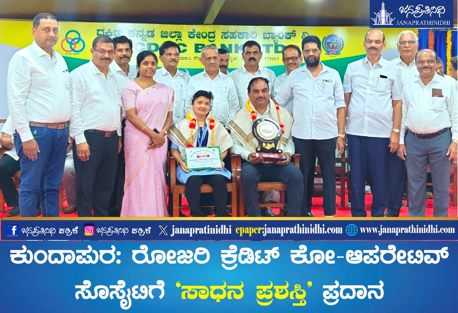 ಆ.30ರಂದು ಮಂಗಳೂರಿನಲ್ಲಿ ಎಸ್.ಸಿ.ಡಿ.ಸಿ.ಸಿ ಬ್ಯಾಂಕಿನ ಸಭಾಭವನದಲ್ಲಿ ನಡೆದ ದ.ಕ ಜಿಲ್ಲಾ ಕೇಂದ್ರ ಸಹಕಾರಿ ಬ್ಯಾಂಕಿನ 111ನೇ ವಾರ್ಷಿಕ ಮಹಾಸಭೆಯಲ್ಲಿ ಎಸ್.ಸಿ.ಡಿ.ಸಿ.ಸಿ ಬ್ಯಾಂಕ್ ಅಧ್ಯಕ್ಷರಾದ ಡಾ.ಎಮ್ ಎನ್.ರಾಜೇಂದ್ರ ಕುಮಾರ್ ಅವರು ರೋಜರಿ ಕ್ರೆಡಿಟ್ ಕೋ-ಆಪರೇಟಿವ್ ಸೊಸೈಟಿ ಅಧ್ಯಕ್ಷರಾದ ಜೋನ್ಸನ್ ಡಿ‌ಅಲ್ಮೇಡಾ ಮತ್ತು ಮುಖ್ಯ ಕಾರ್ಯನಿರ್ವಹಣಾಧಿಕಾರಿ ಮೇಬಲ್ ಡಿ‌ಅಲ್ಮೇಡಾ ಅವರಿಗೆ ಪ್ರಶಸ್ತಿ ಪ್ರದಾನ ಮಾಡಿದರು.